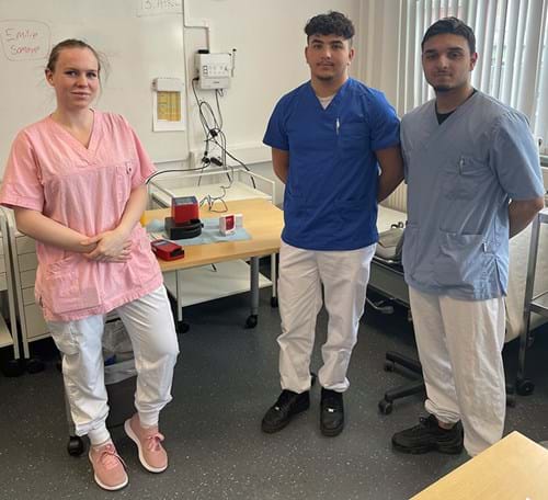 Emilie: Jeg synes det var spennende fordi vi fikk prøve de nye maskinene (red. anm. Hb 801 – HemoCues nyeste modell for hemoglobinanalysering) som ansatte på et legekontor kanskje ikke har vært bort i. Så når man da får seg jobb, så har man kanskje mer kunnskap som man tar med seg inn på legekontoret.