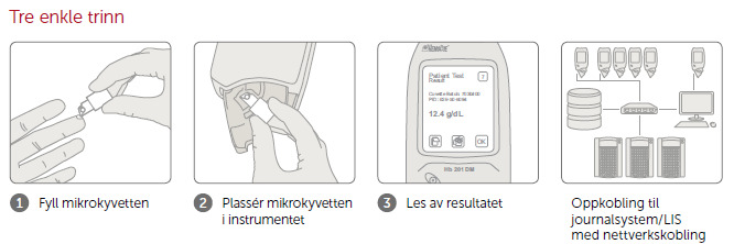 HemoCue® Hb 201-systemet er kjent for nøyaktige resultater kombinert med enkelhet og er Norges, så vel som verdens mest brukte for pasientnær hemoglobinmåling.