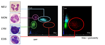 Scil Element HT5 bruker 3-vinklers laserteknologi for å differensiere mellom lymfocytter, monocytter, nøytrofile og eosinofile granulocytter og egne histogram for RBC og PLT.