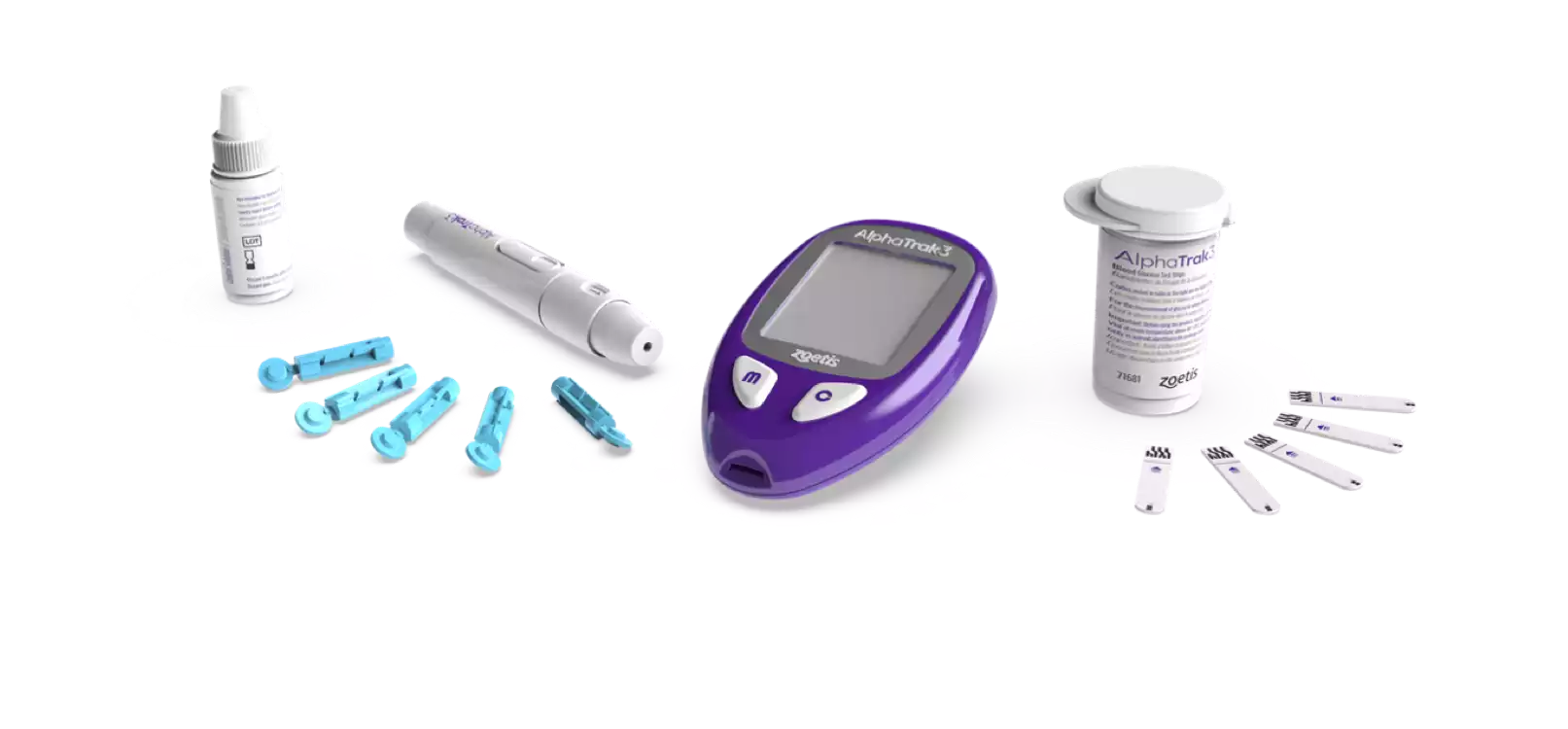 AlphaTrak 3 fra Zoetis er en avansert glukosemåler spesialutviklet og tilpasset fysilogien/blodkjemien hos hunder, katter og hester. Dette er veterinærens valg for nøyaktig overvåkning og behandling av diabetes hos kjæledyr.