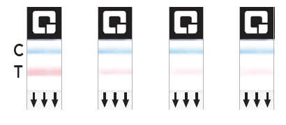 Tolkning av resultater på QuickVue hurtigtester skal i utgangspunktet være klart og enkelt, takket være to ulike farger på kontroll- og testlinjen med henholdsvis blå og rosa farge.